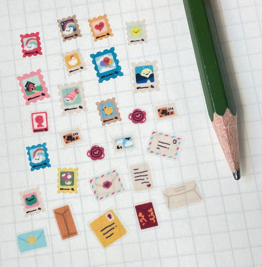 008 Mini Mail | Happy Post Planner Sticker Sheet Tiny Postage Stamp Stickers | Envelope Seals | Miniature Stamps BuJo Bullet Journal Tracker