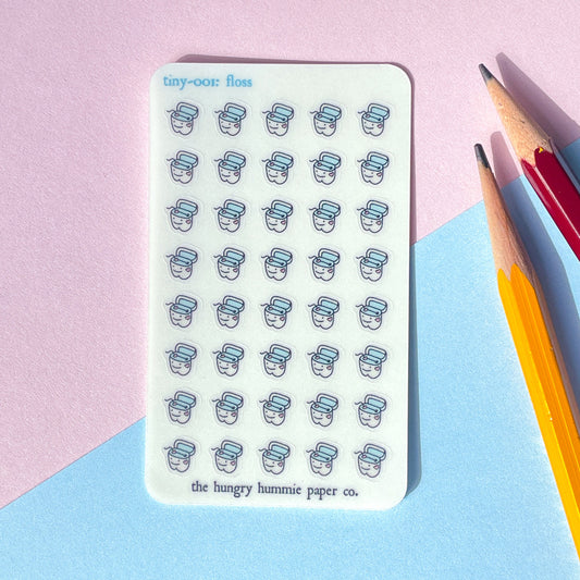 001 Floss Mini Planner Sticker Sheet | Tiny Dental Hygiene Stickers | Oral Health Small Miniature Seals BuJo Bullet Journal Tracking Dentist