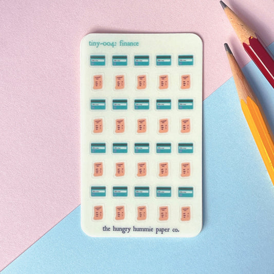 004 Finance | Mini Planner Sticker Sheet | Bills Receipts Debit Credit Stickers BuJo | Small Miniature Tracker Seals | Bullet Journal Icons