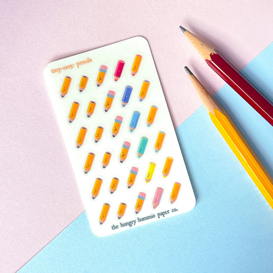 005 Pencils | Mini Planner Sticker Sheet | Tiny Coloured Pencil Icon Stickers Credit Card Sized BuJo Bullet Journal Tracker Miniature Seals