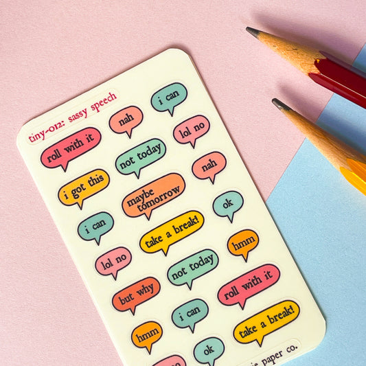 012 Sassy Speech Mini Planner Sticker Sheet : tiny self-care motivational sayings for your bullet journal, diary or schedule