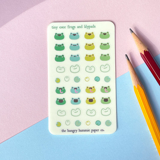 010 Frogs and Lilypads mini sticker sheet : tiny frog faces! Cute gifts for emoji amphibian lovers colour icons Bullet Journals, Trackers