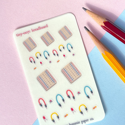 007 Breadboard | Mini Planner Sticker Sheet | Tiny Programming Coding Stickers | Track Electronics STEM Miniature Wires Code Bullet Journal