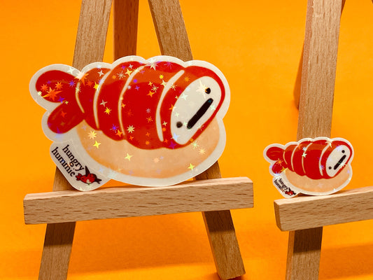 Ebi Blushing Nigiri | Holographic Sushi Sticker Set of 1 Big, 1 Mini Stickers | Holo Stars | Sparkle Cute Kawaii Sadface Food | Prawn Shrimp