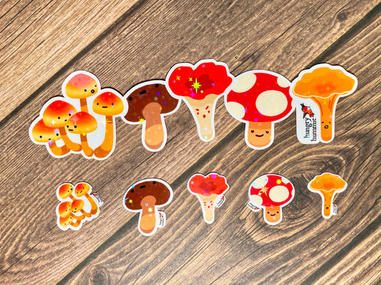 Group of Five Mushroom Sticker with 5 Mini Holographic Stickers | Shiny Mycology Related Fungi Gifts for Biologists Ecology Nature Science