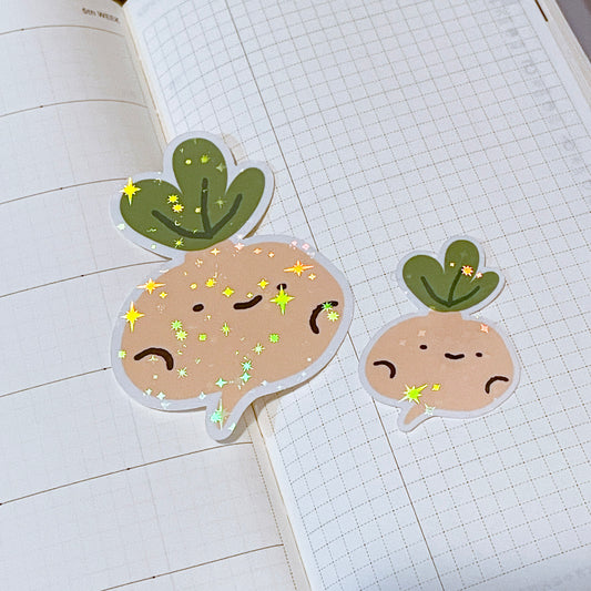 Turnip Sticker Set! Adorable vegetables from the veggie patch! | One large and one mini holographic sticker. A gift for vegans / vegetarians