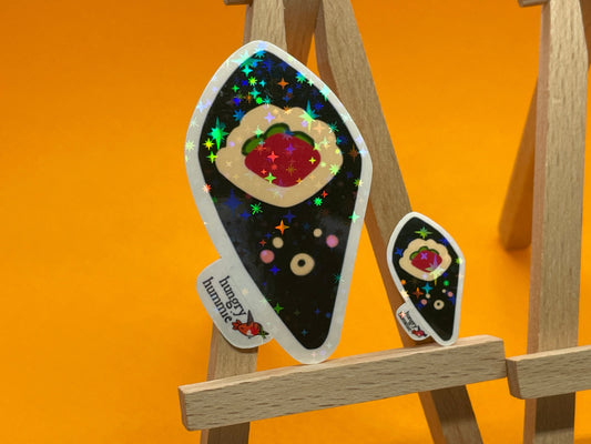 Surprised Tuna Temaki Hand Roll | Holographic Sushi Sticker Set of 1 Big, 1 Mini Stickers | Holo Stars | Sparkle Cute Kawaii Food | Maguro