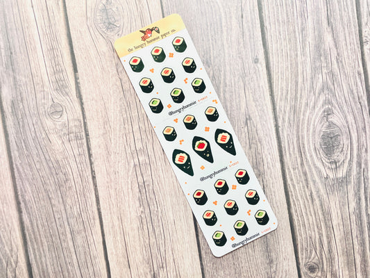 s-002 Mini Sushi Rolls and Handrolls Sticker Sheet s002 | Maki Temaki Foodie Planner Stickers | Japanese Food Hosomaki Perforated Journal Seals