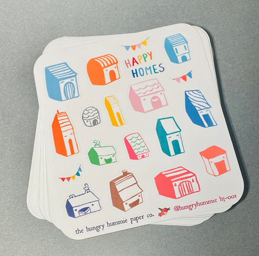 Happy Houses Cozy Sticker Sheet | Cosy vibes | New home celebration stickers, cute houses, tiny houses, townhome notebook planner stickers