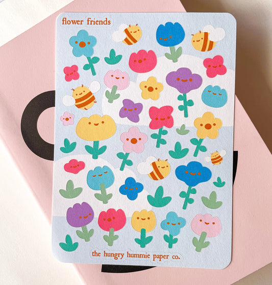 Flower and Bee Friends Cozy Sticker Sheet - Colourful Floral notebook planner deco polco paper spring themed designs for gardening lovers