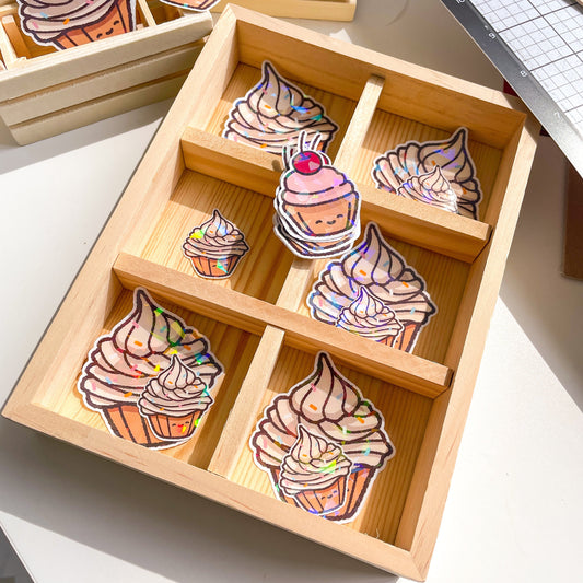 Holographic Cupcakes sticker set - great gift for bakery lovers! Food stickers for fans of baked goods - decorate planners and notebooks!