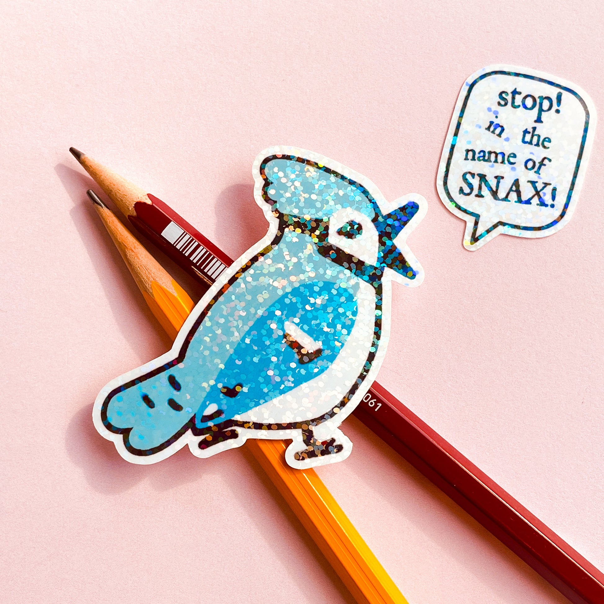 SNAX! Holographic Blue Jay bird sticker - great gift for birb lovers! Birdwatching ornithology birbfest fans - planners notebooks and schedules